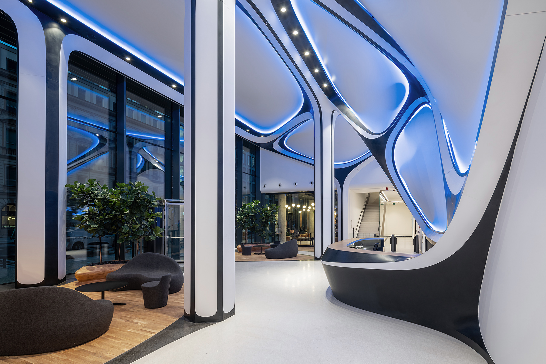 Lobby Masaryčka Architekt: Zaha Hadid Architects - www.zaha-hadid.com Klient: Amos design - amosdesign.cz