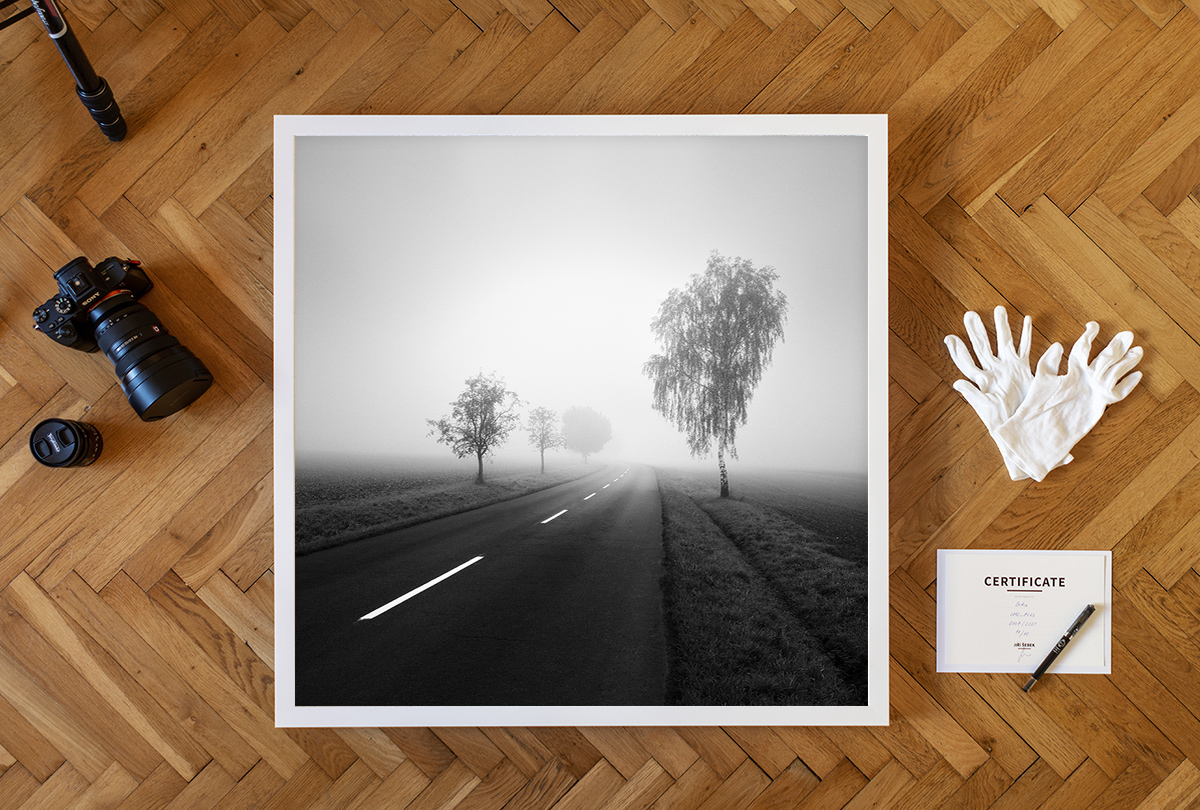 Fotografie jsou zhotoveny archivním pigmentovým tiskem na papír muzejní kvality s vysokou gramáží.